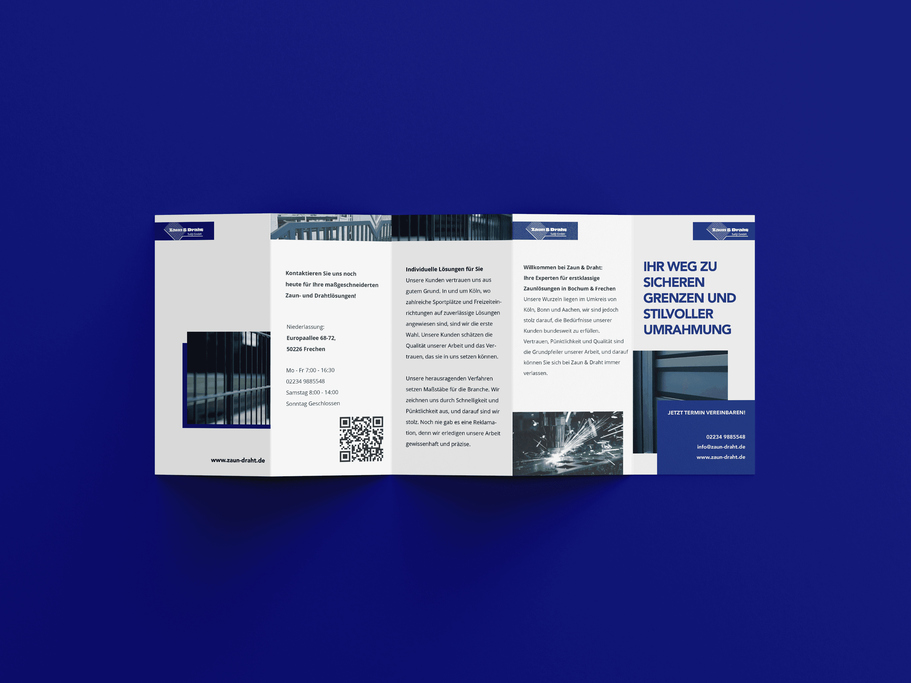 Der Flyer wurde nicht nur als ästhetisches Gestaltungselement entwickelt, sondern als strategisches Kommunikationsmittel konzipiert. Ziel war es, eine klare Struktur mit einer gezielten Kombination aus Bild- und Textelementen zu schaffen, um die Dienstleistung des Unternehmens informativ, vertrauenswürdig und professionell zu präsentieren.